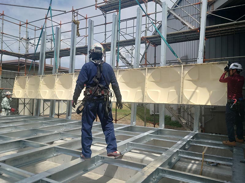 | 業務内容 | ビルやマンション、工場などに設置するパネルタンク(貯水槽)を現地で組み立てする仕事です |